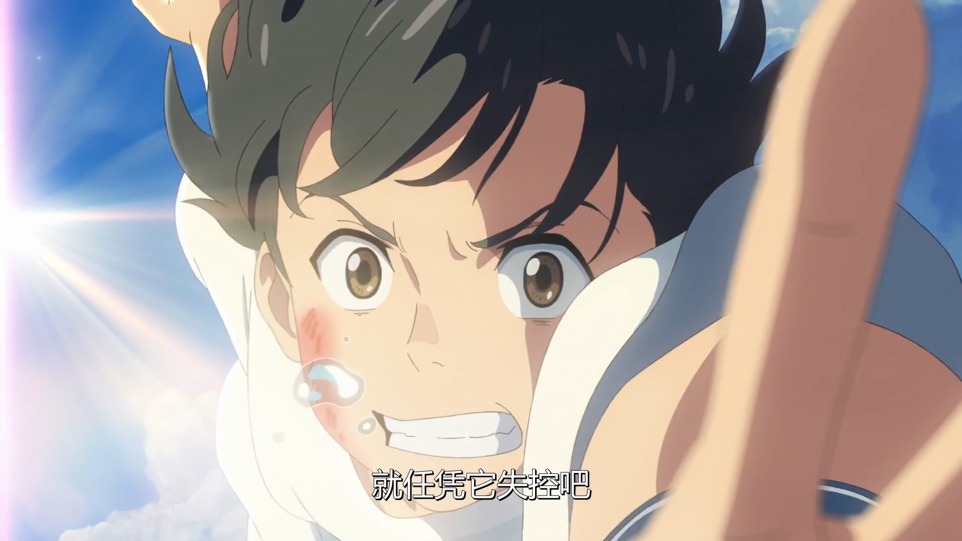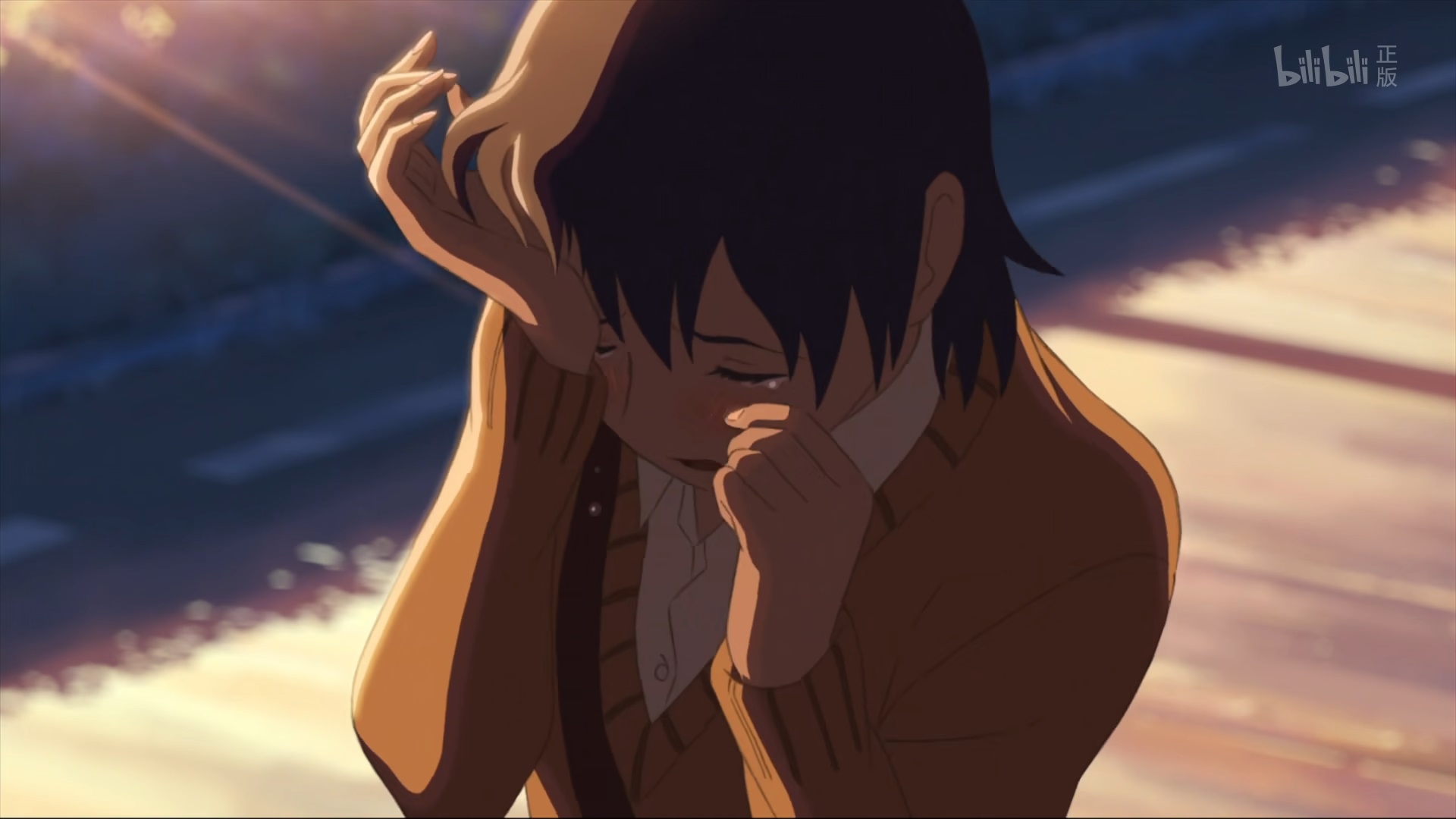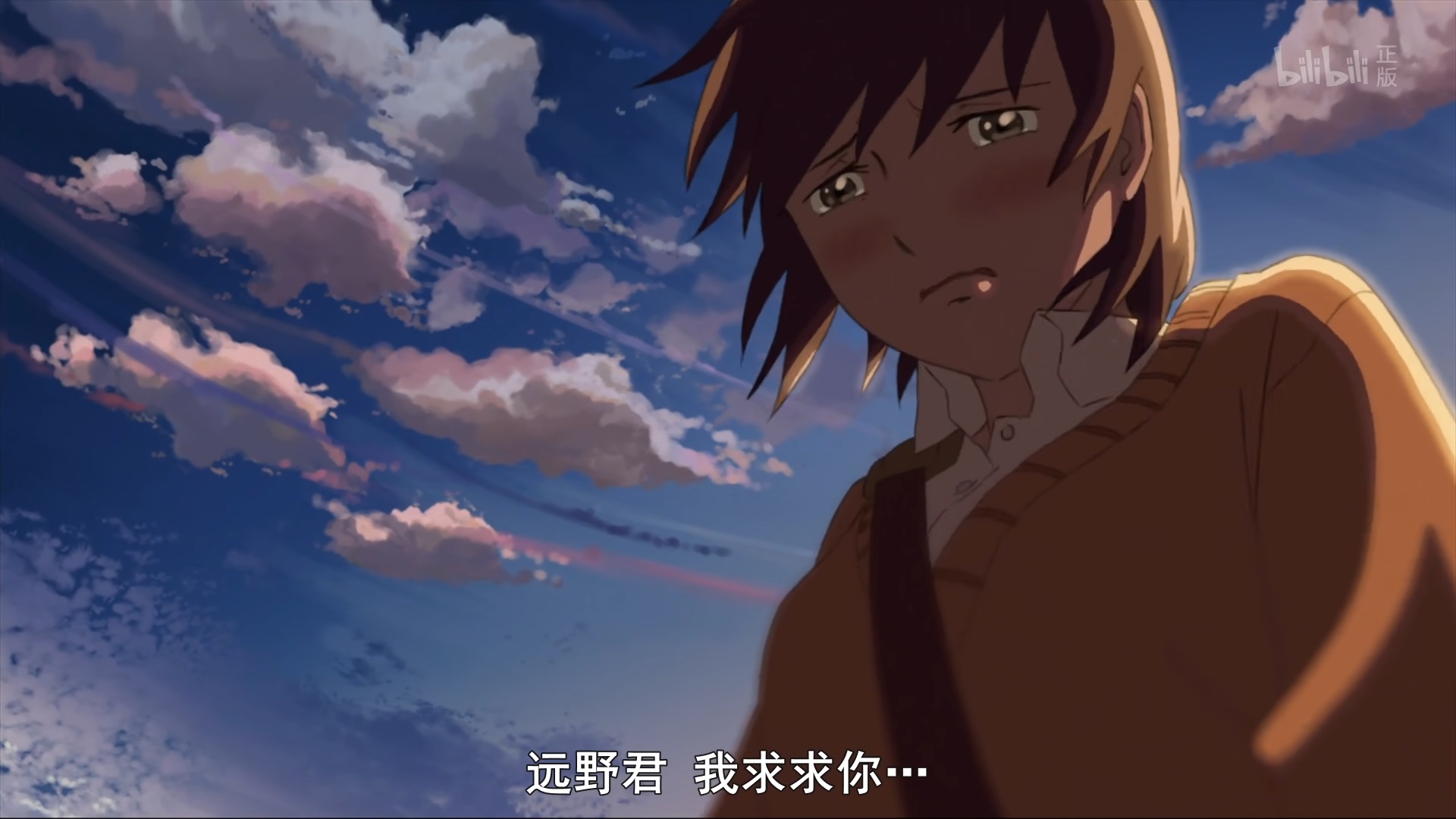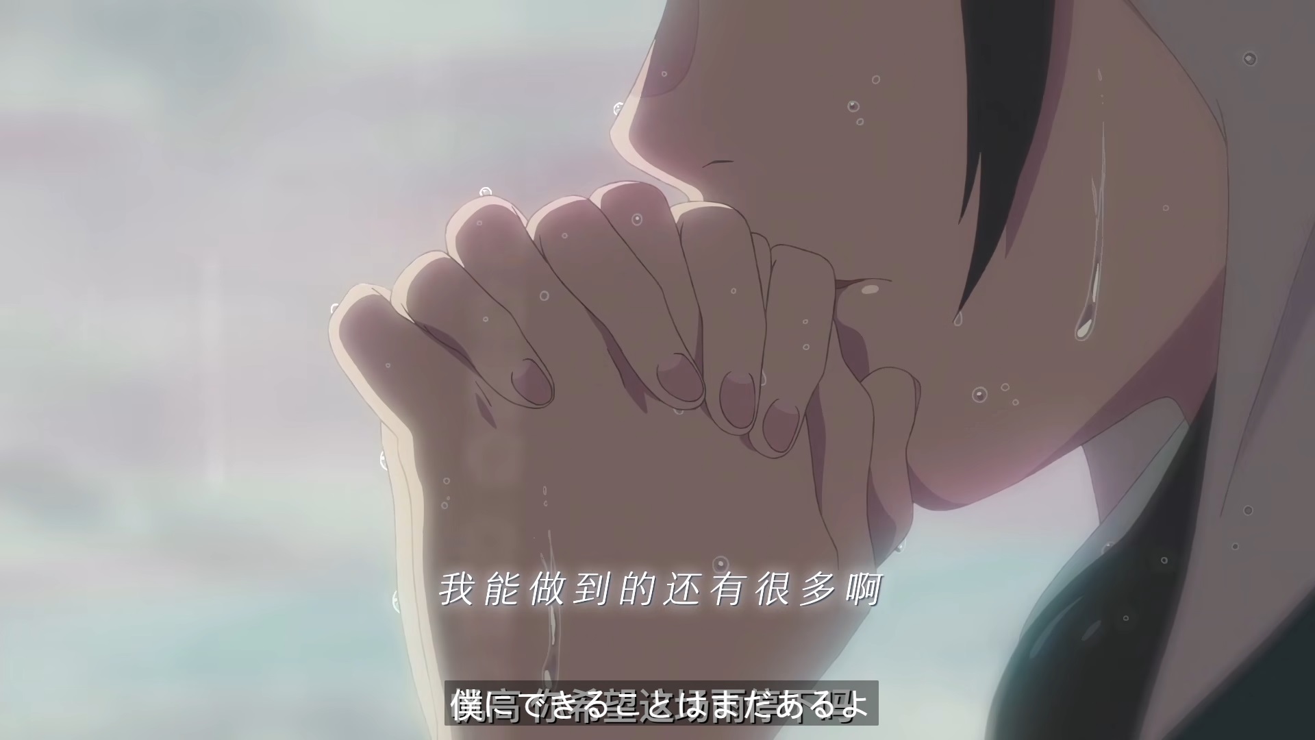 男主还有一段也是非常感动,就是不顾一切的去救回阳菜,即使受伤流血,逃离警察追捕,那么的不顾一切,毫不犹豫,拼命在轨道上玩命奔跑,冲破重重障碍阻挠,喊出那句“我只是想再见她一面啊”。