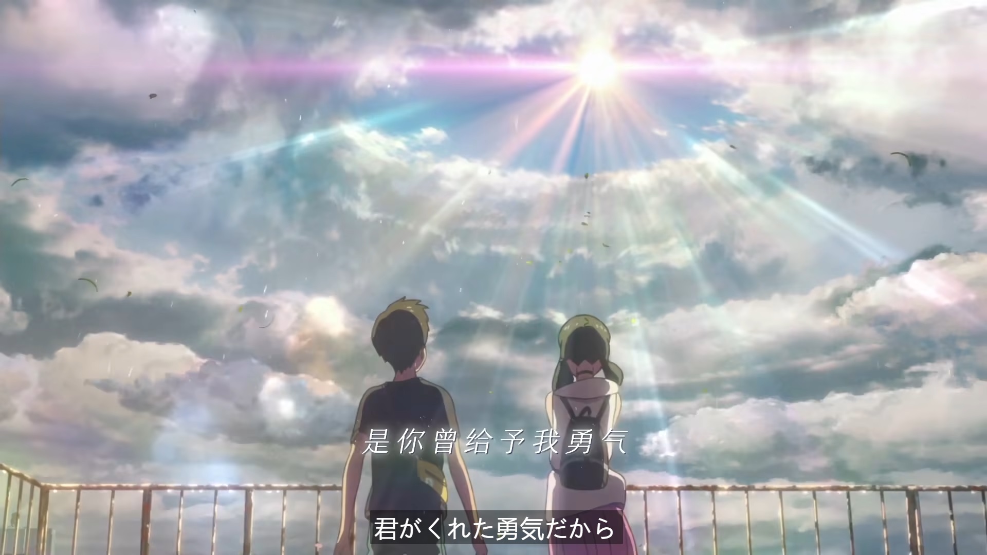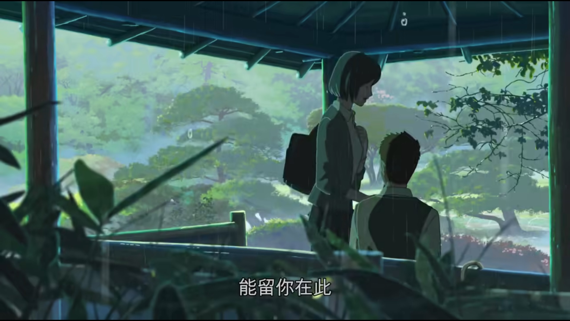 新海诚,精美的场景画面,深刻的人物描绘,优秀的剧情故事,神奇的是像叶言、秒速中即使不像其他作品一样有着宏美的故事背景,只是简单描述男女主的日常,却依然能够扣人心弦的推动故事发展。爱情就是故事本身,通过画面诉说着每个人自己内心的爱情故事,或引起每个人内心美好的回念、悲伤的过往、或产生对美好爱恋的憧憬与期盼。