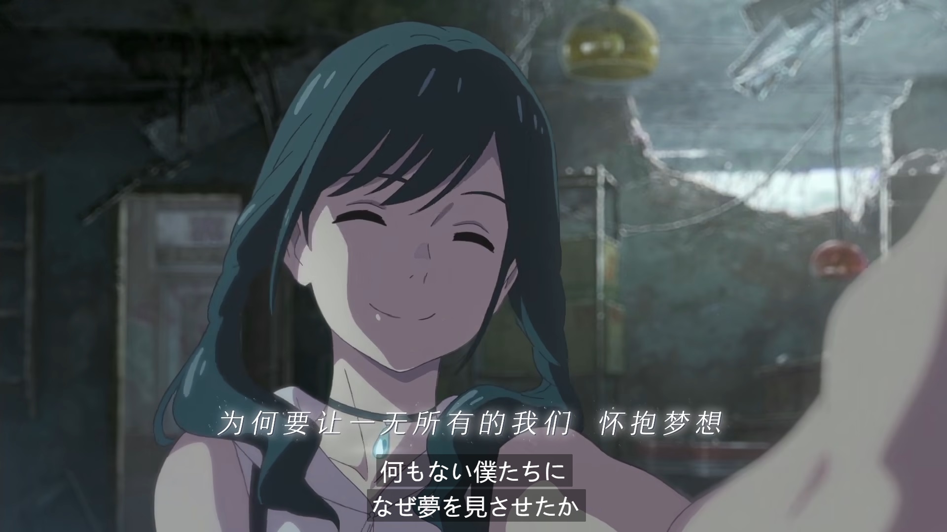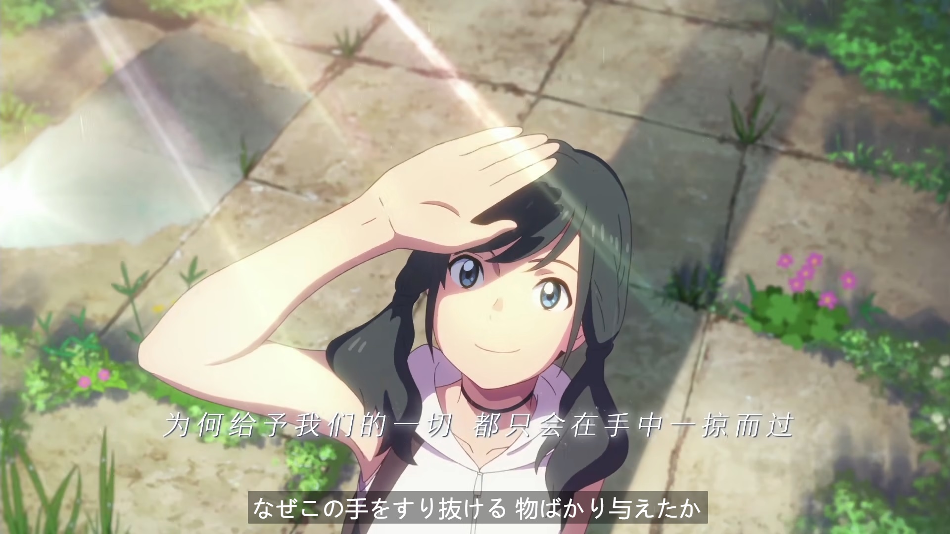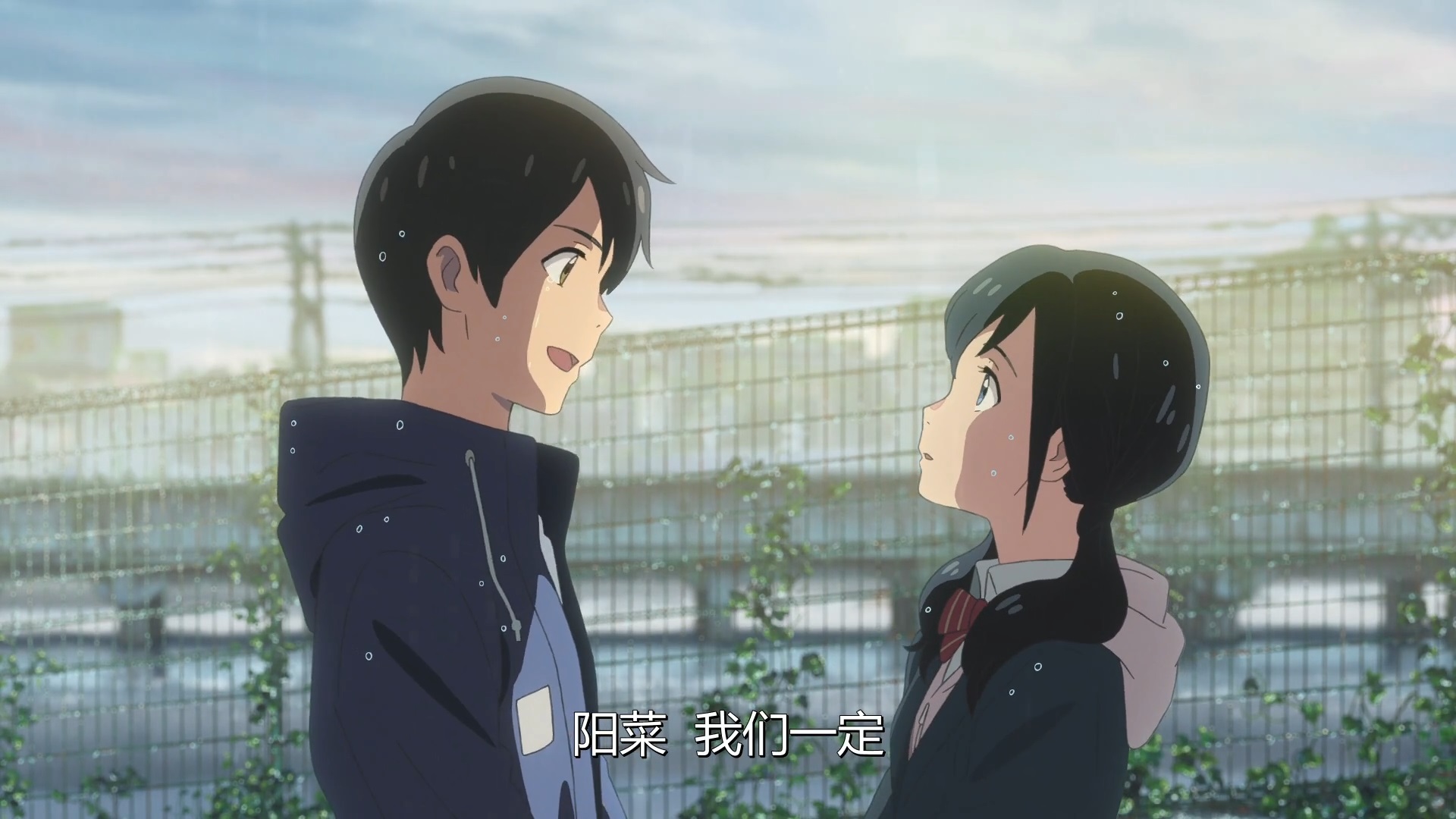 《你的名字》,《天气之子》是16、19年的作品,作品的时长、投入与制作有了阶跃式提升。《你的名字》是很久之前看过的,当时觉得剧情设定真的十分惊艳啊,动画的节奏,场景描述简直是完美,最后男女主回头最终相见那一刻真的是超感动的。《天气之子》我也是超爱的,就冲那为了心爱之人,不顾一切,甚至淹掉整个城市也要选择她。之前的《你的名字》《云之彼端》即得到美人归又拯救了“世界”,这次就是硬生生的要在“世界”与她之间做出选择,最后男主义无反顾的选择了她,硬是让观众看到了东京被大水淹没,简直是大呼过瘾。如果说我喜欢花苗是出于共情,那喜欢阳菜那真是出于真爱。年少便挑起家庭生计的担子,装作成年兼职,又十分善良、纯真、温柔、阳光,向男主施以援手,在知道自己会消失后,也依然为了大爱、为了世人对阳光的憧憬而牺牲自我,履行雨女的职责,牺牲自我,替世人通天驱雨开阳,身体开始变透明了,却依然响应着世人变晴的愿望,十分勇敢。我真的很喜欢这种“小大人”、成熟设定的女主,其实也是有点共情的。而且还十分开朗可爱,即使知道自己使命后也依然乐观坦然面对,那句“帆高 你希望这场雨停下吗?”,那虔诚的祈求,简直美呆了,即使不是雨女了,却依然祈求着阳光,或是祈求着男主的平安。真的挺羡慕男主的,有那份勇气与执着,可以遇到女主,不顾一切投入自己全部的爱意。“倘若神真的存在 求求你 现在这样已经很满足了 没问题的 我们能自己生存下去的 所以请别再赐予我们更多恩惠 也别再从我们身上夺走任何事物了 神啊 求求你 请让我们 请让我们 就这样直到永远吧”。这句话完美表达了男主对眼前一切的美好,由衷的感动,珍惜每分每秒,同时又害怕着失去这份美好。这段独白真是很感动,感慨道美好、欢乐总是短暂,需要付出一切才能去守护,命运又是如此造化弄人,给予我们最美好的,但却只有短暂的瞬间,无法无力去永久挽留那份美好,只能无比虔诚的祈求着神明的眷顾。