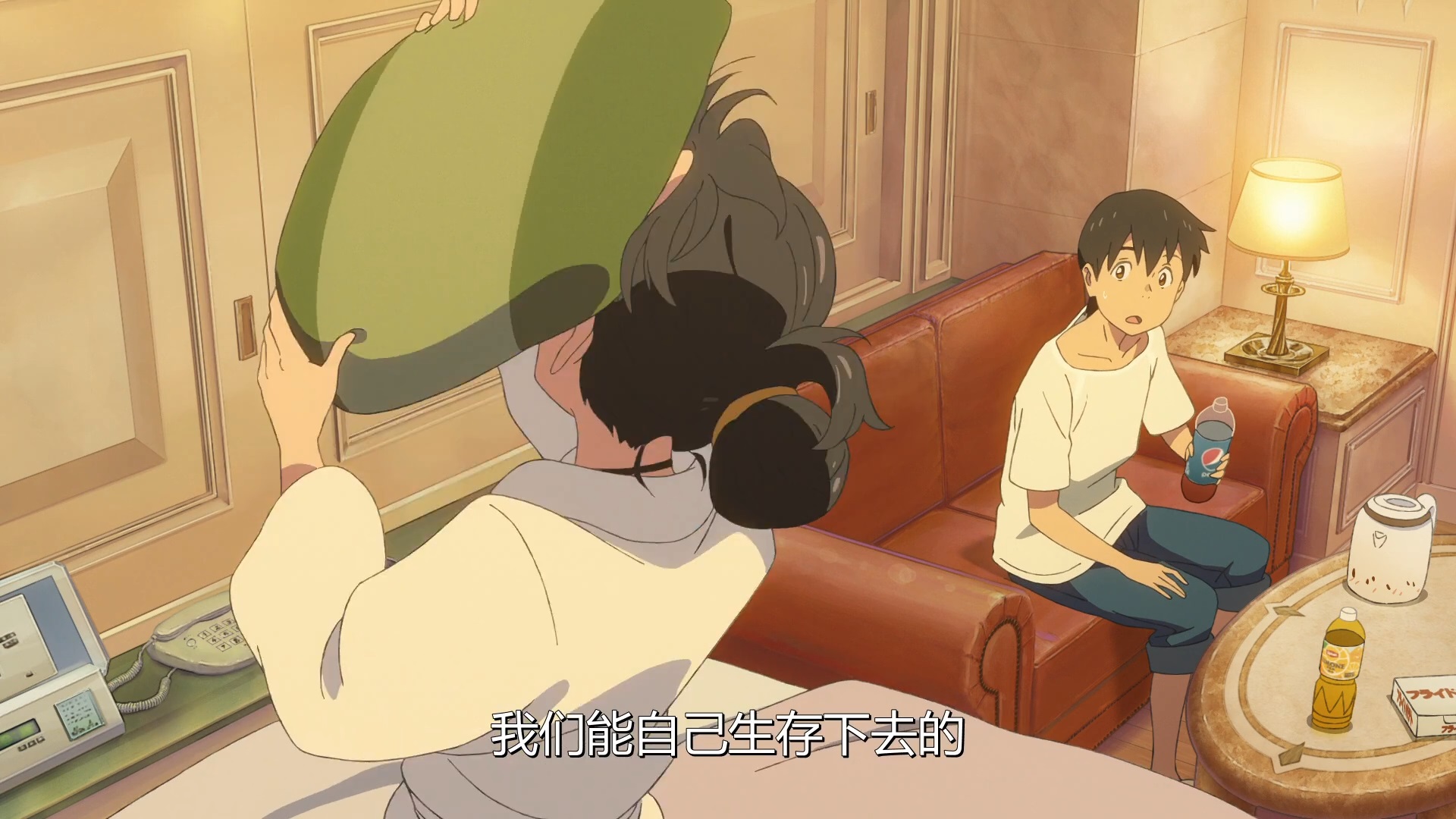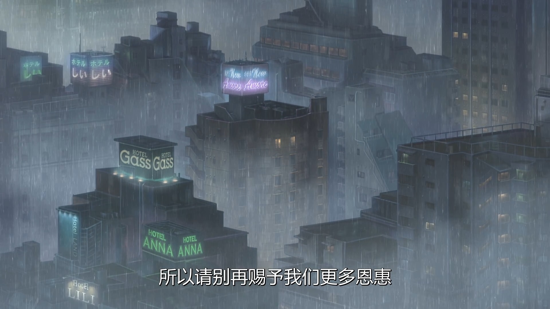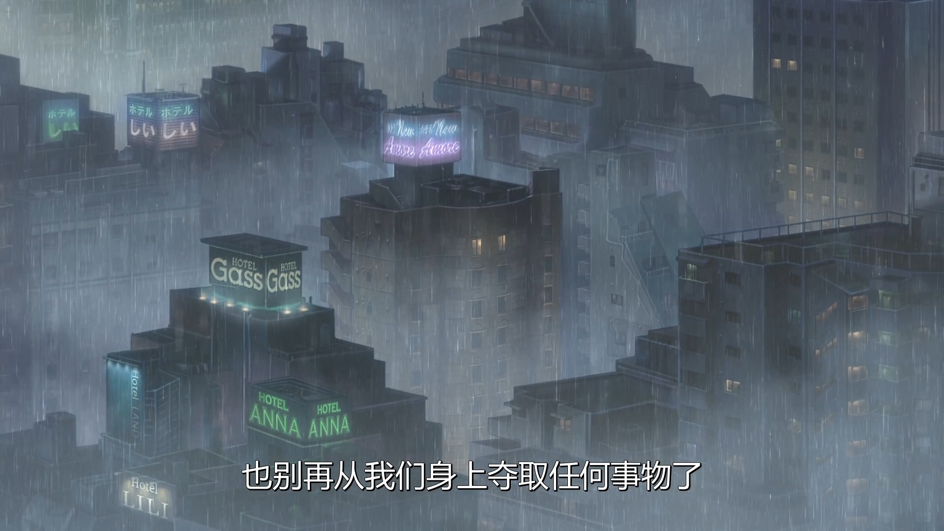《你的名字》,《天气之子》是16、19年的作品,作品的时长、投入与制作有了阶跃式提升。《你的名字》是很久之前看过的,当时觉得剧情设定真的十分惊艳啊,动画的节奏,场景描述简直是完美,最后男女主回头最终相见那一刻真的是超感动的。《天气之子》我也是超爱的,就冲那为了心爱之人,不顾一切,甚至淹掉整个城市也要选择她。之前的《你的名字》《云之彼端》即得到美人归又拯救了“世界”,这次就是硬生生的要在“世界”与她之间做出选择,最后男主义无反顾的选择了她,硬是让观众看到了东京被大水淹没,简直是大呼过瘾。如果说我喜欢花苗是出于共情,那喜欢阳菜那真是出于真爱。年少便挑起家庭生计的担子,装作成年兼职,又十分善良、纯真、温柔、阳光,向男主施以援手,在知道自己会消失后,也依然为了大爱、为了世人对阳光的憧憬而牺牲自我,履行雨女的职责,牺牲自我,替世人通天驱雨开阳,身体开始变透明了,却依然响应着世人变晴的愿望,十分勇敢。我真的很喜欢这种“小大人”、成熟设定的女主,其实也是有点共情的。而且还十分开朗可爱,即使知道自己使命后也依然乐观坦然面对,那句“帆高 你希望这场雨停下吗?”,那虔诚的祈求,简直美呆了,即使不是雨女了,却依然祈求着阳光,或是祈求着男主的平安。真的挺羡慕男主的,有那份勇气与执着,可以遇到女主,不顾一切投入自己全部的爱意。“倘若神真的存在 求求你 现在这样已经很满足了 没问题的 我们能自己生存下去的 所以请别再赐予我们更多恩惠 也别再从我们身上夺走任何事物了 神啊 求求你 请让我们 请让我们 就这样直到永远吧”。这句话完美表达了男主对眼前一切的美好,由衷的感动,珍惜每分每秒,同时又害怕着失去这份美好。这段独白真是很感动,感慨道美好、欢乐总是短暂,需要付出一切才能去守护,命运又是如此造化弄人,给予我们最美好的,但却只有短暂的瞬间,无法无力去永久挽留那份美好,只能无比虔诚的祈求着神明的眷顾。