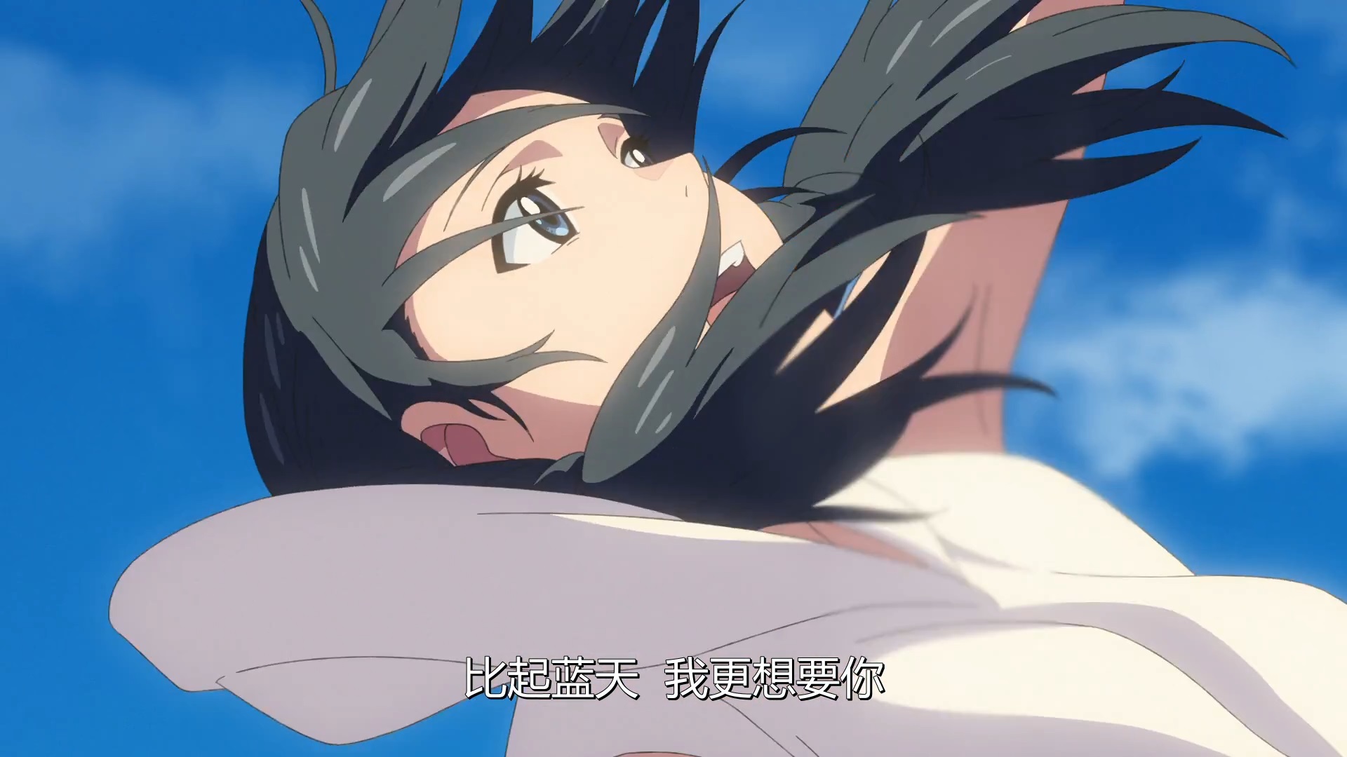 两人在万丈高空上艰难重逢,相拥那段配合“千年难遇的今天”音乐,简直了,超级震撼与感动,太美了,全身起鸡皮疙瘩,太燃了。那句“就算世界就此不再放晴也无所谓” “比起蓝天 我更想要你” “管他什么天气 就任凭它失控吧” 。太爱了。