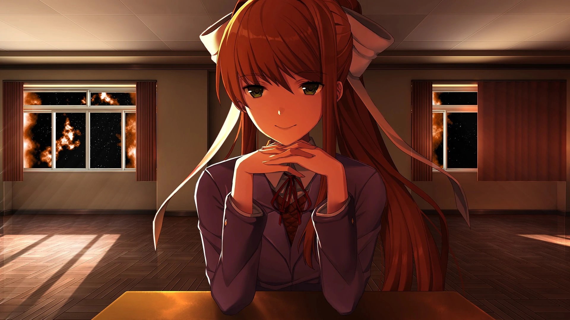 再后面的剧情我不太想多说了,按照doki doki forever里的莫妮卡的歌词说就是“one by one they only fall apart”。之后的流程确实有些“心跳”、恐怖,当时我也是夜深人静带着耳机玩的,画面与音乐突然来那么一下,整个人都被惊吓到,是那种发自内心对未知恐怖的恐怖。