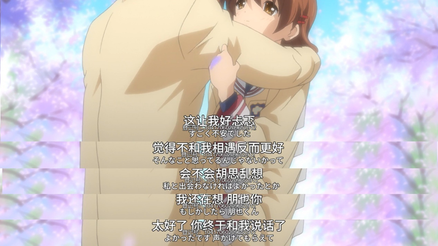 第六天了,这两天被动反向隔离期间没什么事,我的电脑也被隔离了,所以主要都在写这个,写了很多,我希望能尽量写完整,也想尽快完成。期间又整理回看了些精彩感动瞬间,依旧是那么有冲击力,不止一次的眼红,但比第一次有进步忍住止住了。写这句话时正好云音乐随机播放到团子大家族,愣了一下,想想看clannad前听,看后听竟是两种感受,真是神奇。本篇记录也临近尾声,今天应该能写完,希望我永远不会忘记clannad带给我的感动,感谢作者。现在心里还是塞塞的,毕竟还没有彻底放下,就让这份感动感觉温暖像风子一样,记忆逐渐淡去,却时不时能回想起这份感觉。