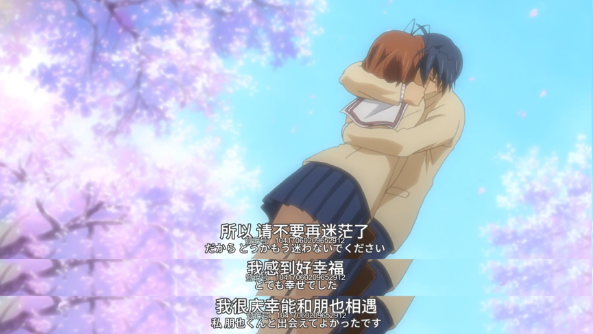 我觉得这就是clannad能被称为神作的原因之一吧,这么多爱中总能有一种爱能戳中你的内心,带给你感动的同时,也让你有所思考启示。即使没有,它所带来的美好,也会像一颗种子深埋在你的内心,让你在不经意间对自己、对他人、对这个世界有了小小的爱意、小小的期待期望。 共勉 。感谢。